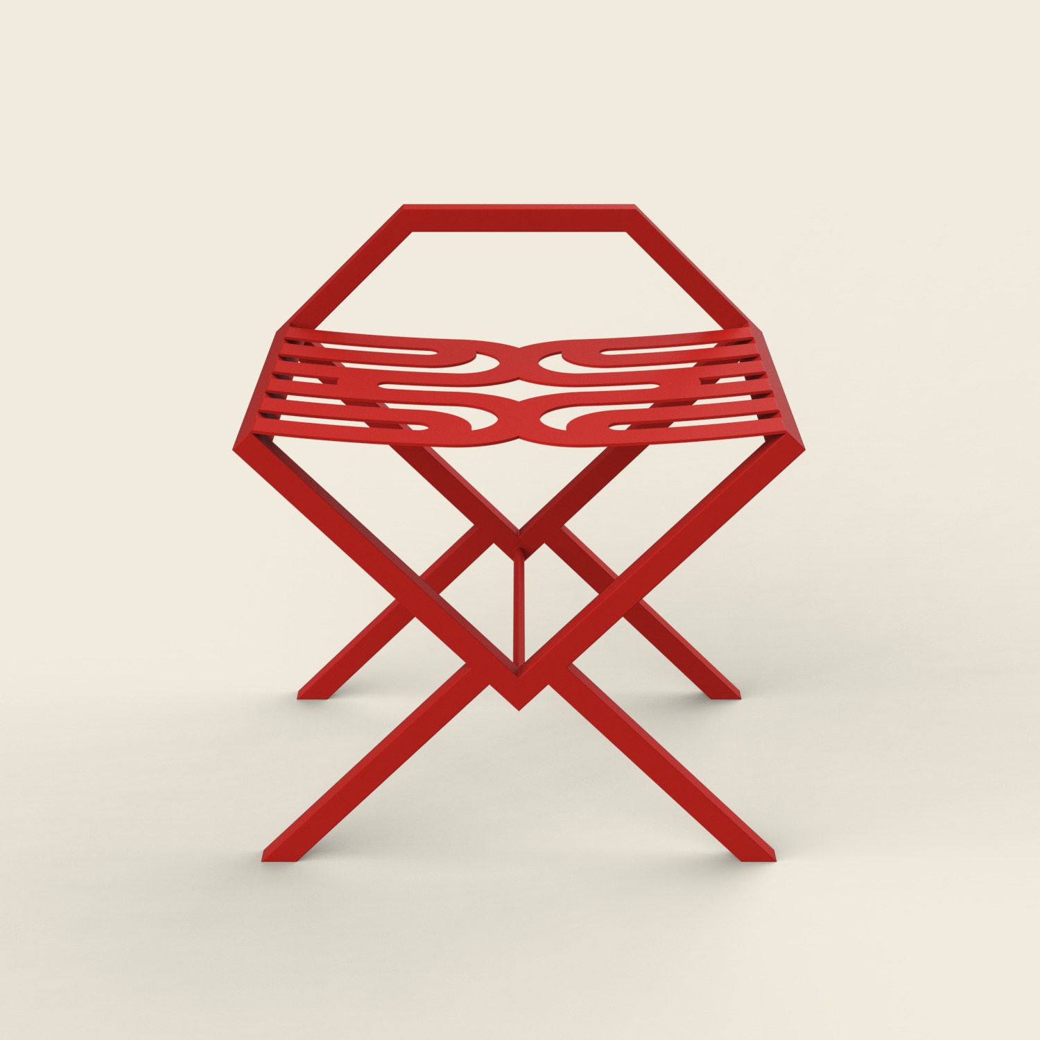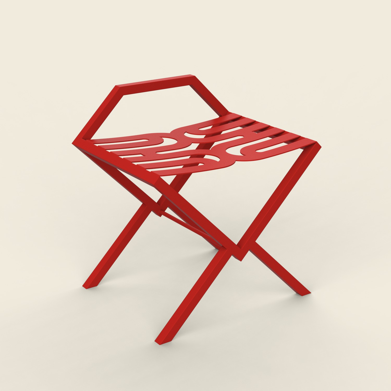 La chaise « Jo » puise son inspiration dans le siège curule, symbole de pouvoir, qu’il prolonge dans un équilibre entre pureté et parure. Il associe des lignes justes et l’ornementation d’une assise magnifique.