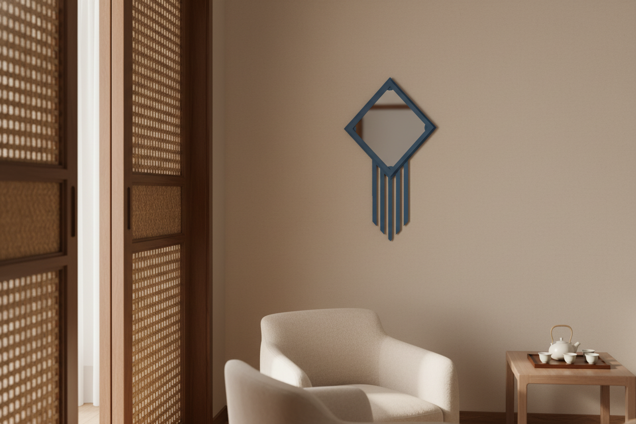 Il occupe une surface contenue et, pourtant, il nous saisit dès qu’on oriente le regard dans sa direction. Une ornementation prolonge vers le bas la surface de réflexion et offre à son utilisateur une parure à son reflet.